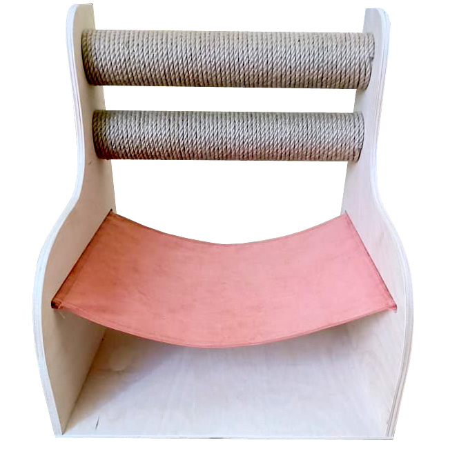 Каркас игрового комплекса - лежака с когтеточками для кошки выполнен из фанеры высокого качества толщиной не менее 6мм. Фанера ошкурена, ошлифована, без лакового покрытия. Полотно гамака - мебельная ткань. Цвет полотна может отличаться от фото.