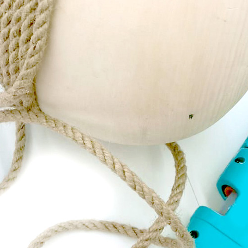 Деревянное яйцо из массива липы обклеено джутовой веревкой